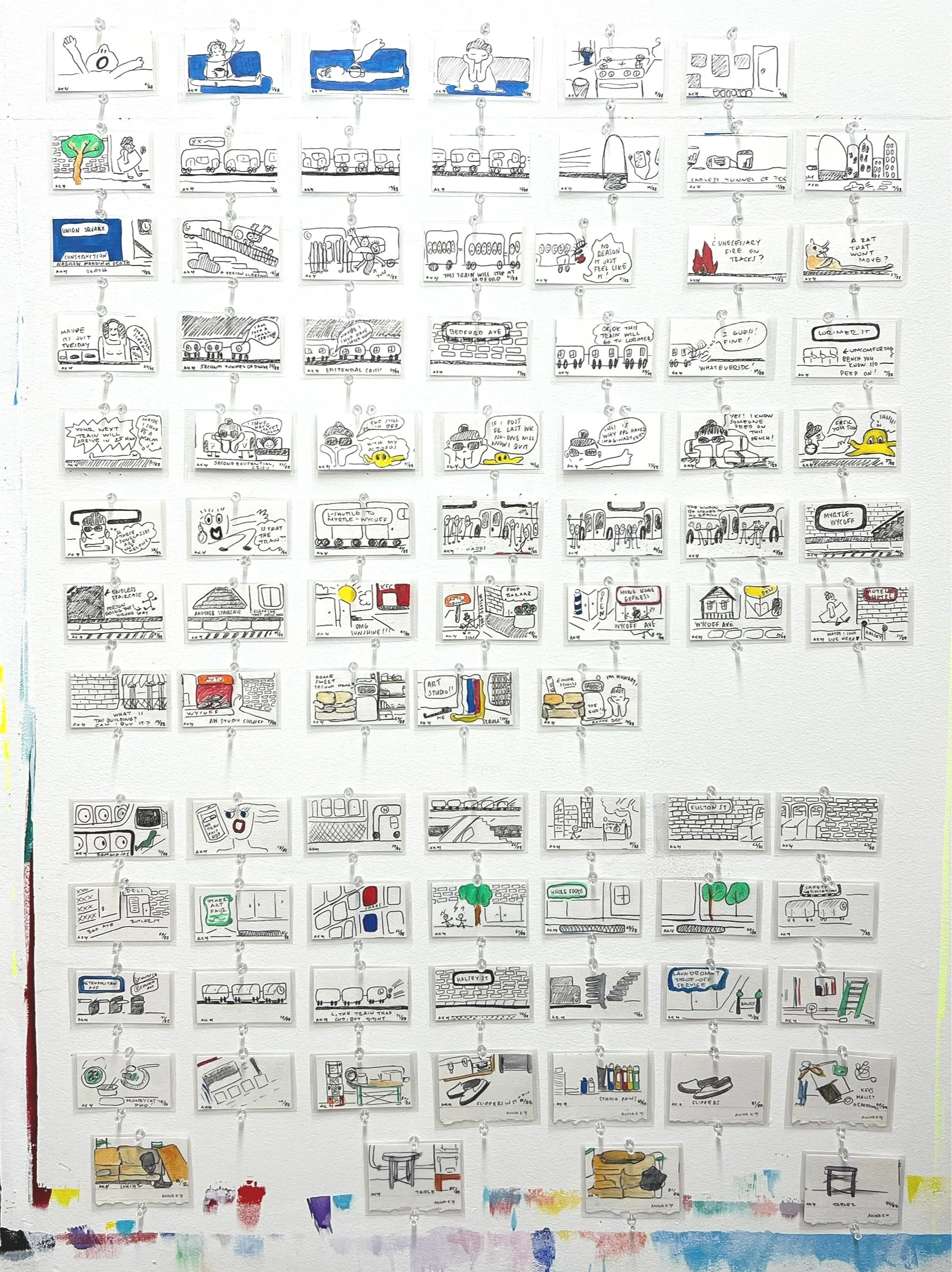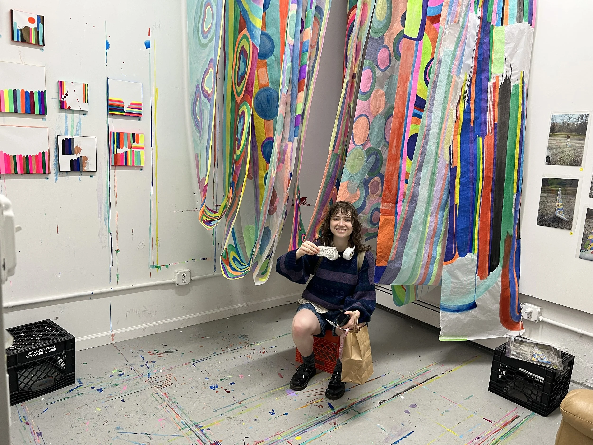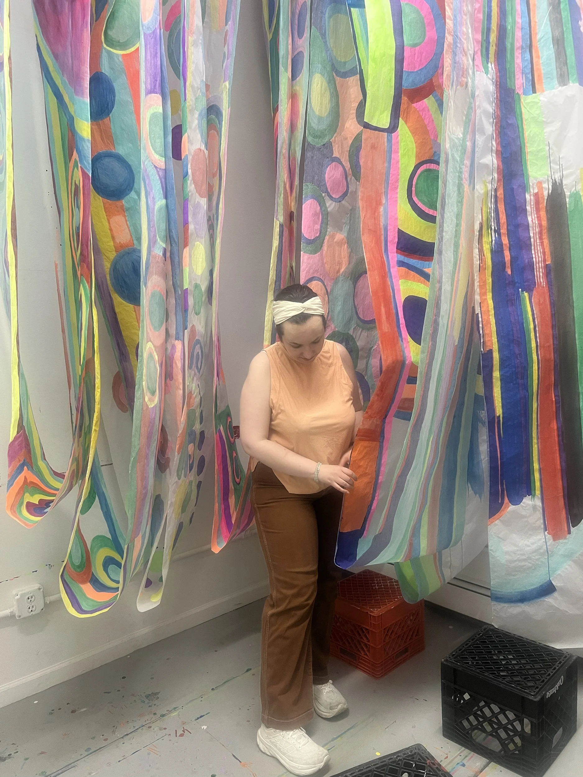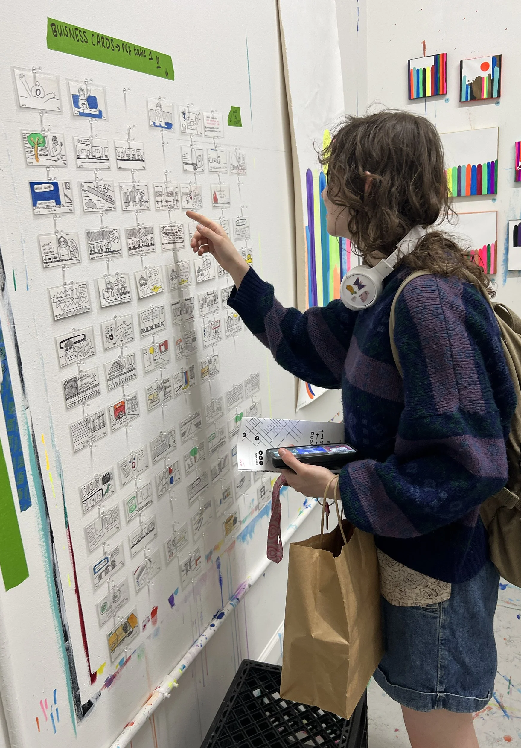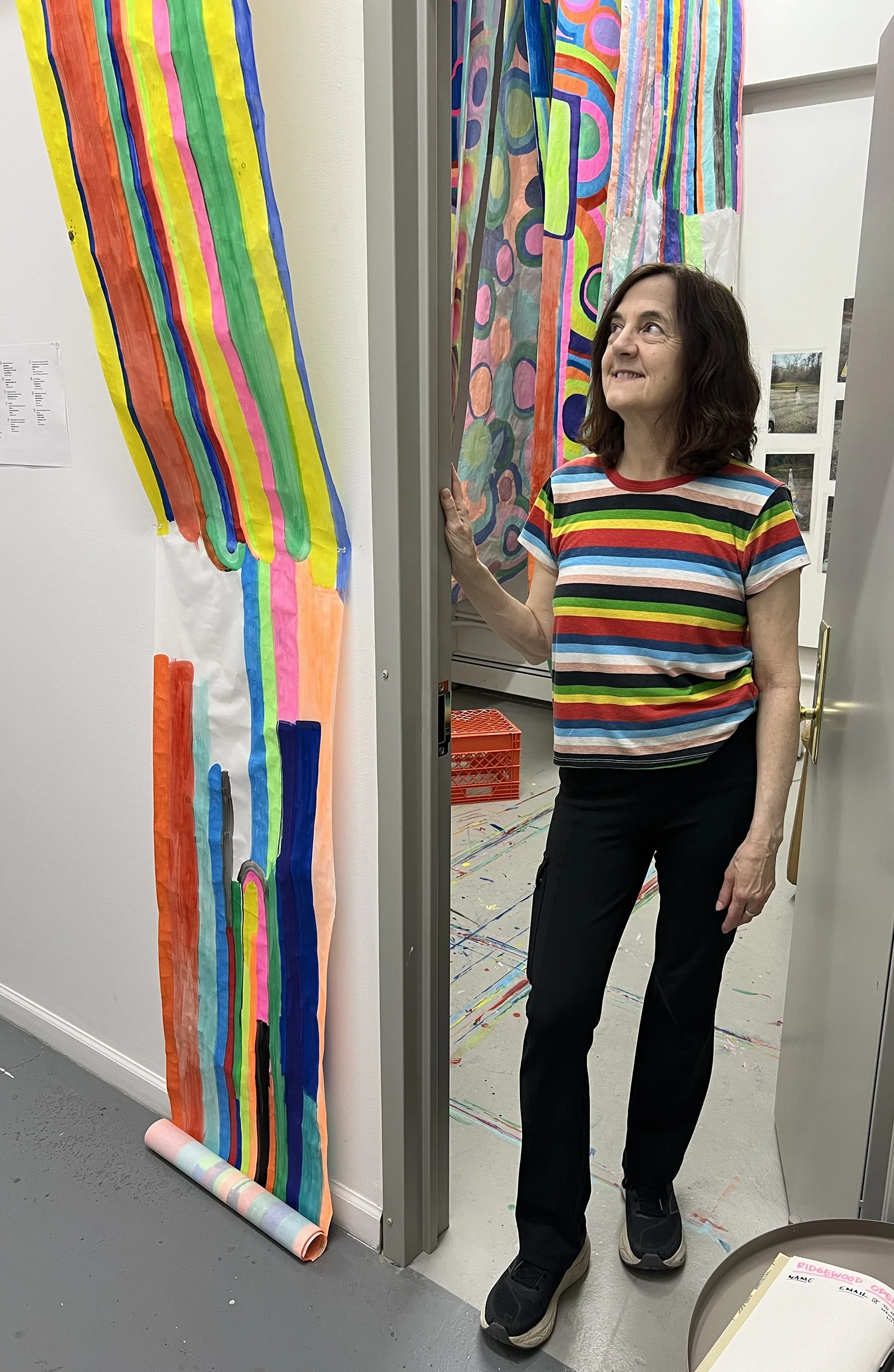 Anna moved her studio to Ridgewood in 2021. She participated in the 2025 Ridgewood Open Studio. For R.O.S. Anna installed Mental Laundry as a tongue-in-cheek interactive installation. Visitors were invited to touch, feel and live inside this scroll. Anna strongly believes that art should be inclusive and relational. She also created a comic about her trials and tribulations commuting from where she lives in Astoria to Ridgewood. Viewers were invited to take a piece of this comic home as a laminated buisness card. Watching viewers interact and identify with this comic remains a highlight for Anna.