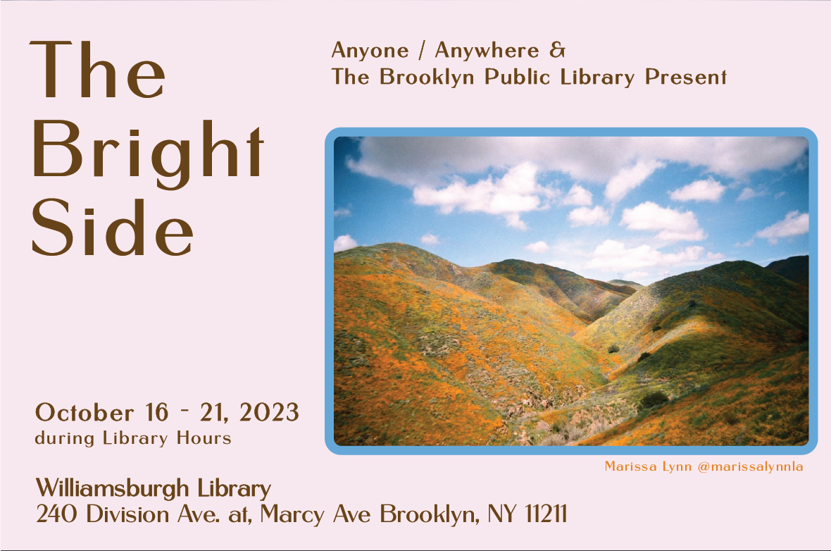 Anyone/Anywhere is curated by Anjelica Jardi. Founded in 2017, Anjelica invites participants to submit photographs based on a theme. Photos are then printed and presented in various spaces. Viewers are often invited to take one home. To learn more, please visit anoneanywhere.org.